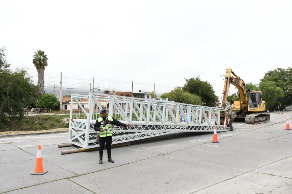 La Municipalidad de Salta inició la colocación del nuevo puente peatonal sobre el canal de la Avenida Yrigoyen mientras avanzan las tareas de mejora en la infraestructura urbana, con la obra localizada específicamente en la intersección con calle Uriburu, donde se retirará la estructura antigua para instalar una pasarela metálica moderna.